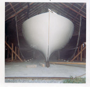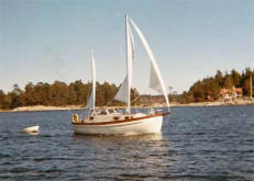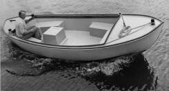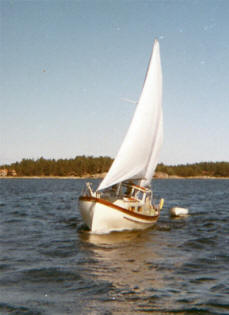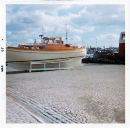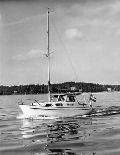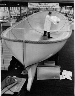 Trålarens uppkomst gynnades av några särskilda fördelar: Hon fick sina linjer formade av verklighetens krav snarare än av teoretiska beräkningar. Hon hade en duglig och PR-kunnig entreprenör i Anders som insåg potentialen i storebrors snipa. Hon blev konstruerad av en tidig specialist på det lovande materialet glasfiberarmerad plast, som dessutom hade resurser att sätta urstarka Lars-Göran i praktiskt arbete. (Lars-Göran höll själv på att plasta katamaraner, typ Tornado fast mindre). Genom denna treenighet slapp man ödesdigra barnsjukdomar. ![]() |